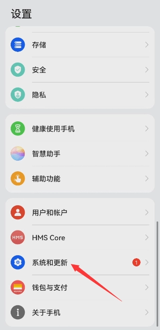 返回“设置”,点击“系统和更新”