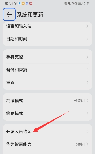 可以看到“开发人员选项”