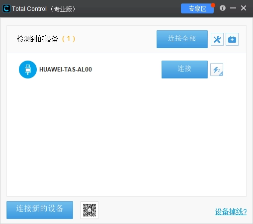 当Total Control准备好进行连接时,会呈现出设备列表。