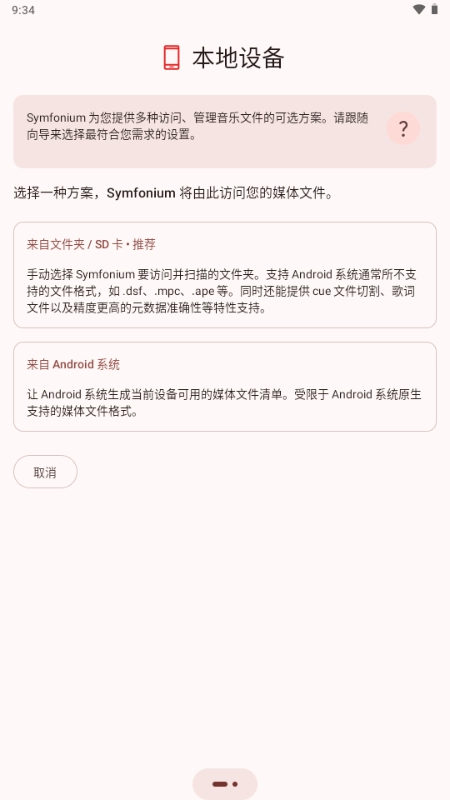 打开软件后,会出现音乐播放方式的选择:云端服务器或本地存储。