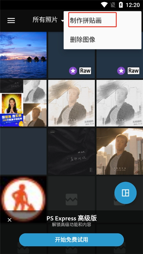 进入软件首页,点击右方三个点,点击制作拼接图;