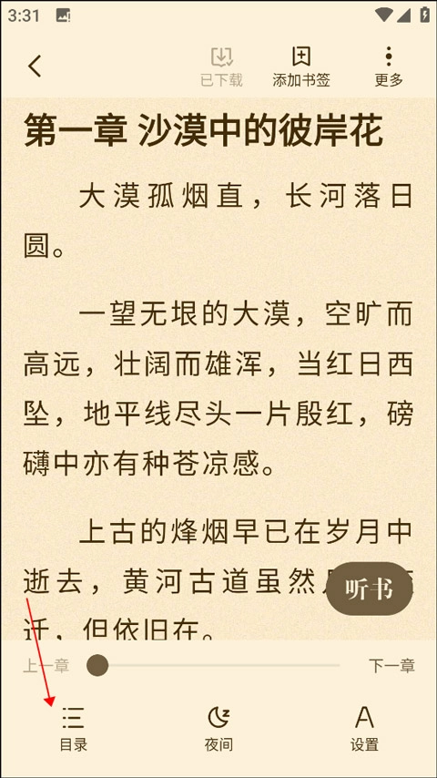 打开目录,即可浏览小说的所有章节列表;