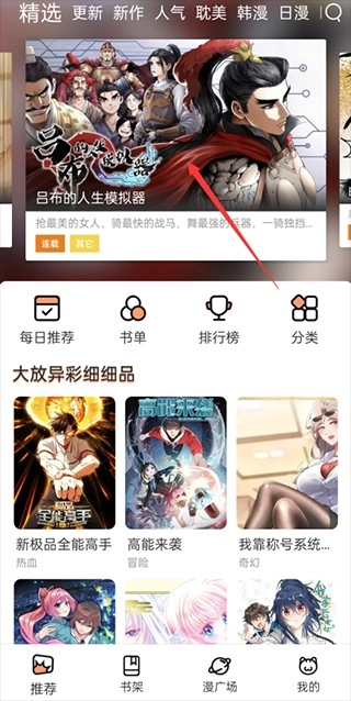 然后在主界面中点击我们想看的漫画封面或标题。