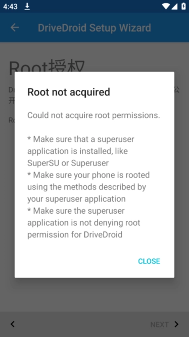 打开已安装好的DriveDroid应用,首次启动时会呈现欢迎界面,点击next按钮即可继续操作。