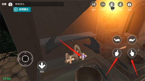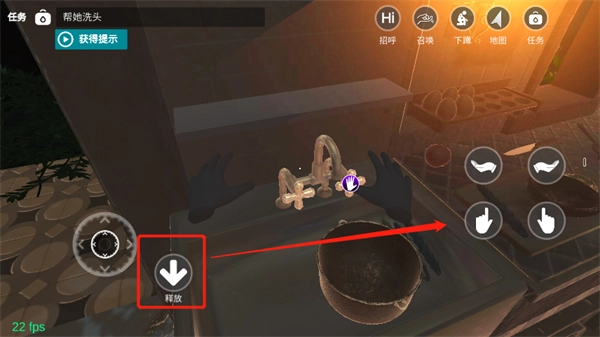 正式进入游戏后,掌心向上的左右手分别对应“给予”和“索要”的功能,你既可以向小忍递出物品,也能向她索要物品。