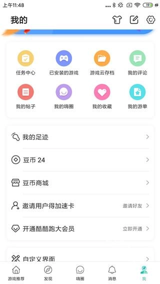 你可以通过底部的菜单栏进入酷酷跑的个人中心页面,然后在这个页面里找到已经安装好的游戏。