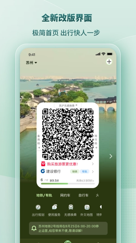 苏e行全新版本已完成UI界面升级,为您带来更便捷的出行体验,助您快人一步,欢迎前来体验~