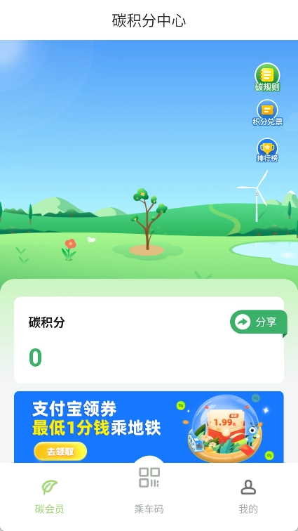 然后打开应用,接着点击首页底部导航栏里的【乘车码】选项。
