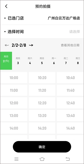 进入【预约拍摄】页面,挑选合适的门店与时间,之后再次点击【确定】按钮。