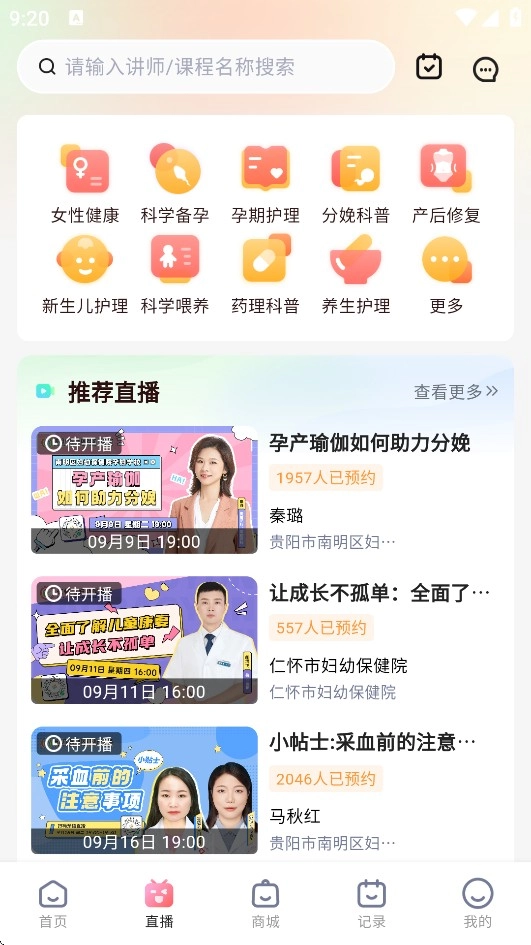 直播:专业产科医生会不定期开展直播活动,分享孕期及育儿相关知识,针对大家遇到的实际问题进行解答,助力妈妈们解决育儿过程中的难题,内容更具权威性。