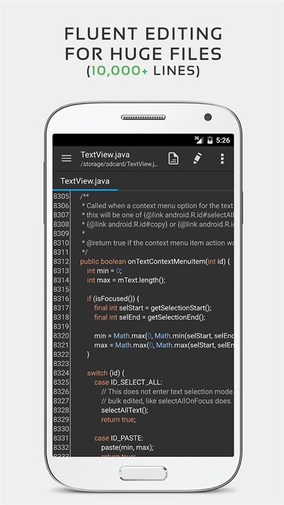 同时针对手机与平板设备做了优化。QuickEdit文本编辑器融入了诸多性能及用户体验层面的优化,其运行速度和输入反馈更为出色,你既可以把它当作常规的文本编辑器来使用,也能将其作为代码编辑器。