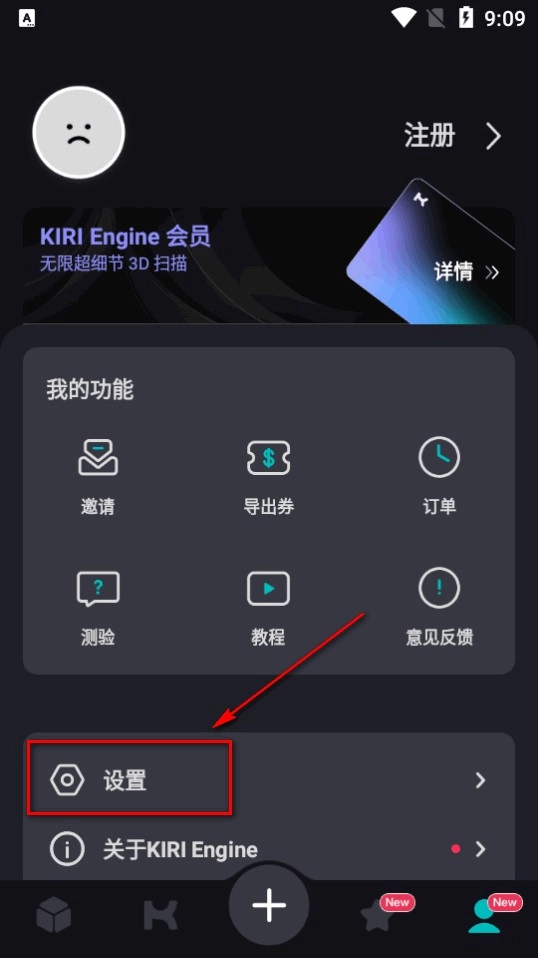 打开KIRI Engine软件,点击右侧的“我的”,具体位置可参考下图。