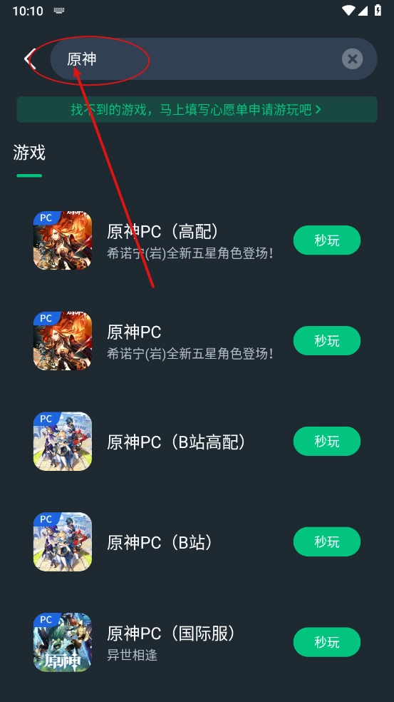 还可以在搜索 框一键搜索喜欢的游戏,如图所示。