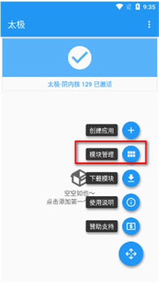 打开框架,选择模块管理点击打开