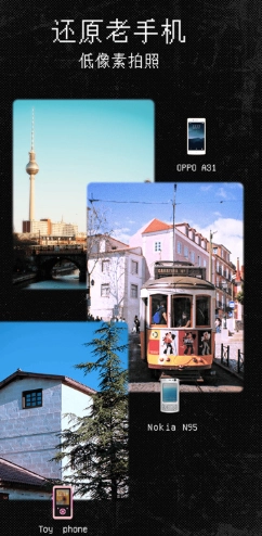 收藏5款常用老手机,方便快速查找切换导入图片:支持图片导入,给图片添加古早味滤镜翻转镜头:前/后置摄像头自由切换,拍人自带磨皮,拍景呈现回忆录感觉