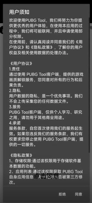 接下来会弹出“用户须知”的弹窗,用户需要点击“同意”选项来确认。