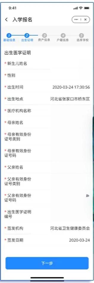 按照页面提示,填写学生和户主的相关信息,并上传户口簿首页、户主页以及学生户口页等资料。
