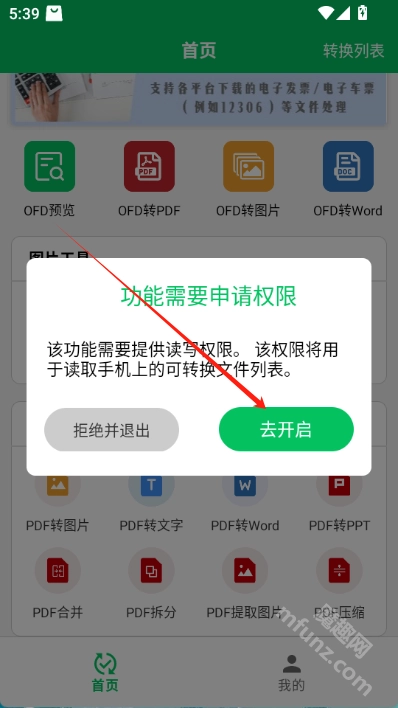 魔趣网(m.mfunz.com)为大家演示ofd预览功能的使用方法,点击ofd预览后,在弹出的对话框里选择【去开启】选项。