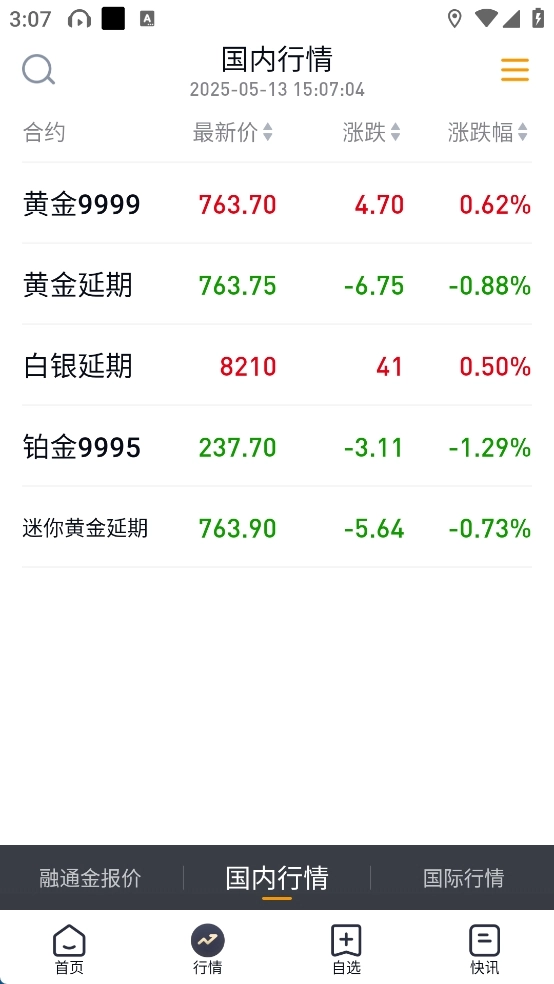 在行情板块,用户能够知晓最新价格、涨跌动态以及国际国内的行情信息。