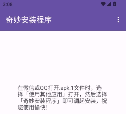 奇妙安装程序是一款第三方应用安装工具,当我们在微信或QQ中需要打开apk文件时就能派上用场,直接通过奇妙安装程序手机版即可调起安装流程。该软件体积小巧、操作便捷,若你不想使用手机自带的默认安装程序,这款奇妙安装程序会是不错的选择。