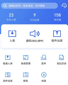 打开驿站助手后,在首页就能看到入库、通知、出库这一系列完整的管理功能。