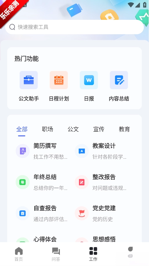 工作总结与报告:可支持工作总结、日报、周报、月报等各类报告的生成,用户仅需输入关键信息,软件便能自动将其整理为结构清晰、内容完整的报告。