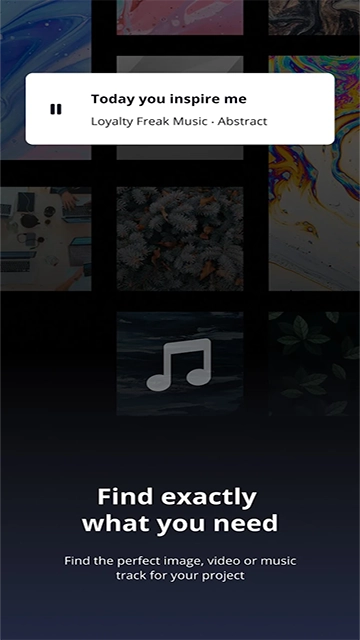 为您的项目找到理想的图像、视频或音乐曲目,之后通过移动应用程序进行分享。