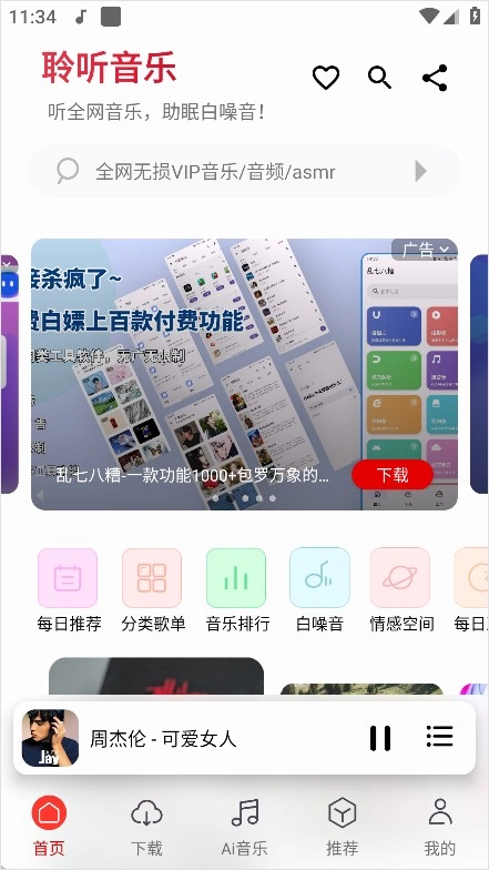 【无损音质】拥有海量无损音乐资源库,为您带来高品质的听觉享受。