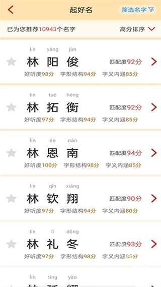 自由取名服务:结合宝宝或儿童的出生八字进行名字测试评分,助您知晓名字所蕴含的意义,我们坚决摒弃缺乏吉祥寓意的名字。