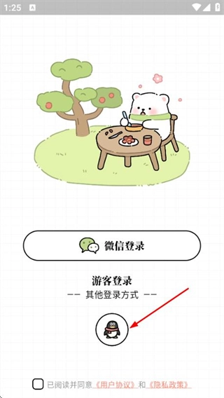 在登录方式选择界面,点击QQ图标,即可进入QQ登录界面。