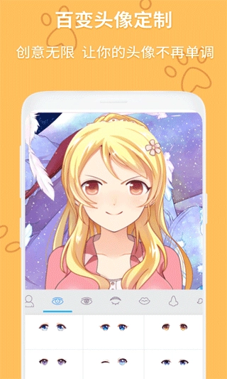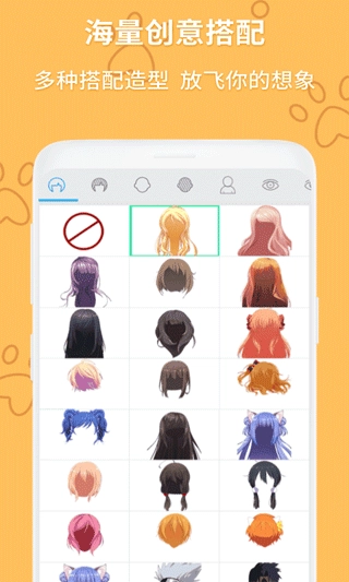 启动动漫头像制作大师,挑选脸型、发型、眼睛等各类元素来完成搭配组合。