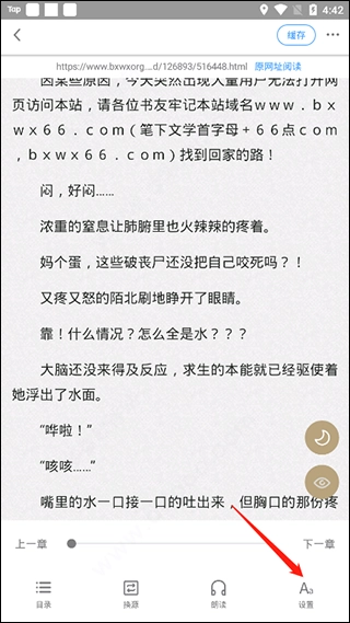 在阅读界面轻点屏幕中间区域,底部会弹出菜单,此时点击【设置】选项即可。