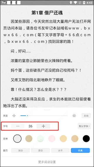 设置界面样式,切换字体,涵盖类似网页的上下滚动以及仿真翻页等多种翻页方式...