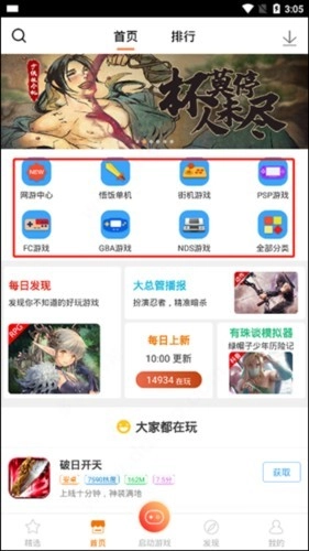 打开软件后,玩家在首页就能看到平台提供的各类游戏。