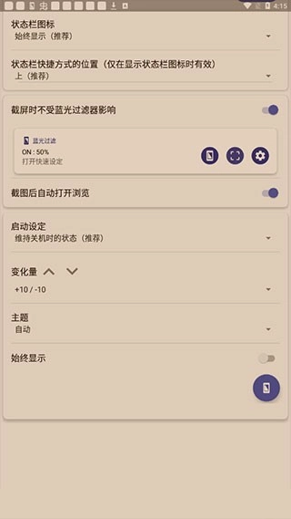 根据自身需求调整不同滤镜效果,能让手机使用体验更清晰,该程序可对屏幕颜色进行调节。
