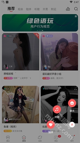 多人聊天室提供多方实时语音功能,你可以在这里参与成语接龙、K歌展示、真心话大冒险、杀人游戏等趣味语音互动,轻松结识志同道合的新朋友。