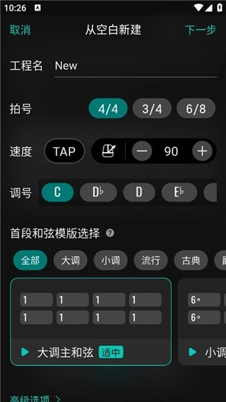 然后选择一个编曲模板;