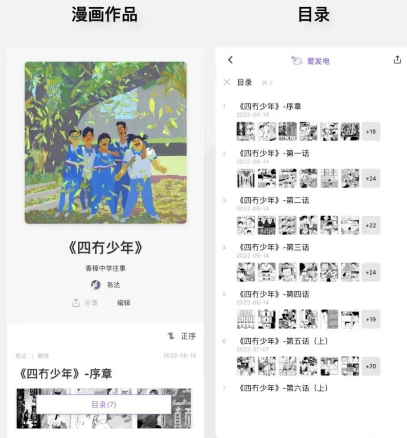 建立作品集主页作品集处点击加号,新建作品集,将漫画的章节添加进去即可,你将得到如下图所示的作品集和目录: