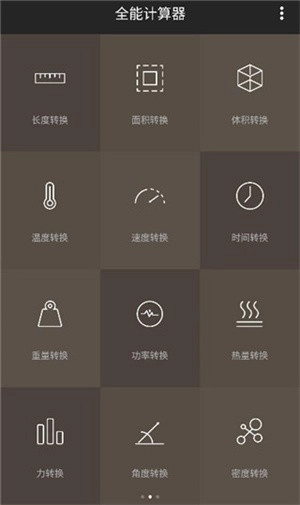 大家安装进入后会发现这款计算器具备三页功能板块,用户能在其中找到各类可进行计算的“单位”选项。
