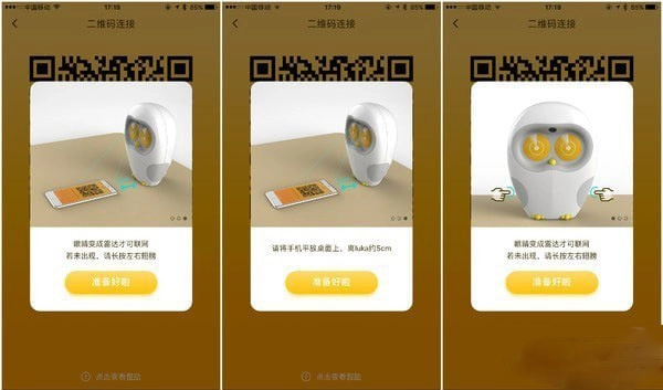 在本站完成安装后,首次打开需先注册个人信息。登录系统后,输入家庭WIFI的账号与密码(注意:不支持5G信号)。随后将生成的二维码平置于距离卢卡Luka底部约125像素的位置,此时卢卡Luka的眼睛会呈现雷达图案,并自动进行扫描连接。若听到“叮”的提示音,即表示连接成功;若连接失败,其眼睛则会显示灰色的WiFi形状图案。