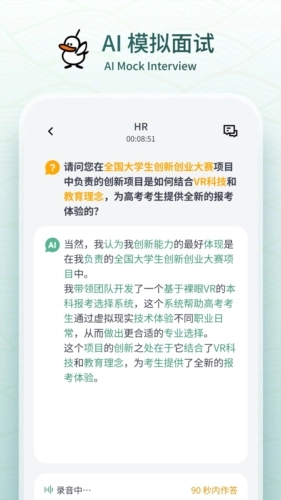 AI模拟面试:多面鹅可以营造真实的面试场景,帮助用户在正式面试前提前熟悉整个流程,借助智能模拟的方式来提升面试技巧,增强自信心。