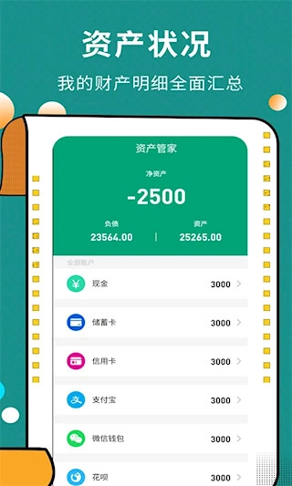资产看板整合了负债管理相关功能,信用卡还款以及贷款分期情况会被自动纳入统计范畴。净资产曲线图允许通过滑动操作来选定时间区间,从而能够快速找到特定时段内的财务变动情况。