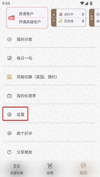 打开玩清单,进入“我的”界面,点击“设置”