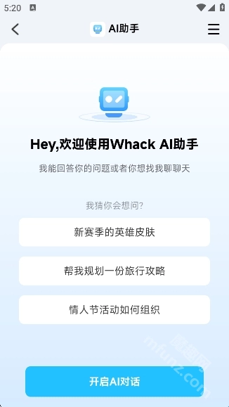 Whack被不少人称作Whack游戏社区,它是一款结合了AI智能技术的游戏社区交友平台。这款Whack特别受众多00后年轻朋友的喜欢,大家能随时在这里找到兴趣相投的新朋友,一同探讨和分享各自的游戏经验与心得。而且在这个Whack里还加入了当下超热门的AI助手,只要输入你想了解的问题,它就能帮你快速给出答案!