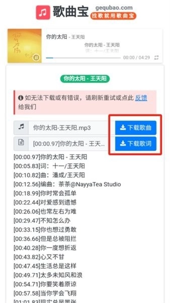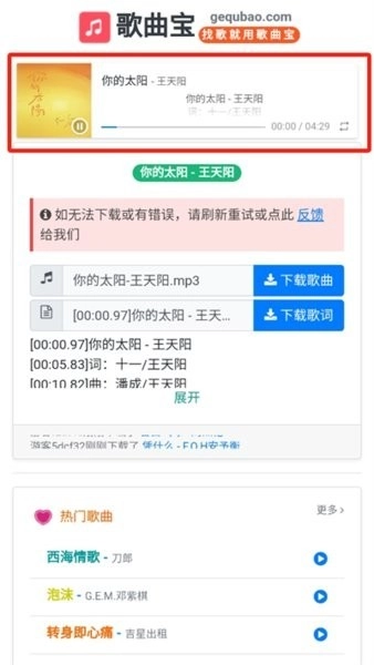 在这里能够直接在线预览并收听当前歌曲,确认一下是否是自己想要寻找的那首歌。