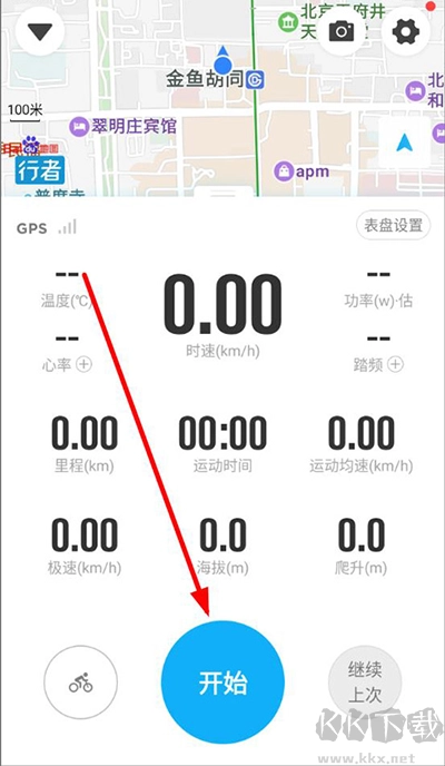 2、在运动板块中,点击“开始”就能记录。运动时,用户可以查看温度、心率、功率、运动时长、里程等数据。