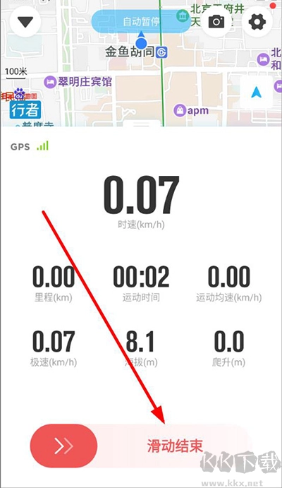 3、骑行结束后可查看到运动速度、时间、海拔等。