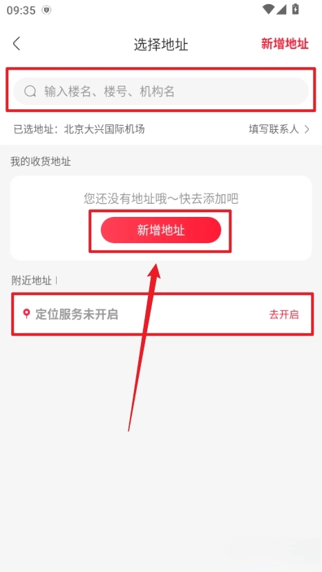 可以用通过搜索、收货地址、附近地址三种方式定位