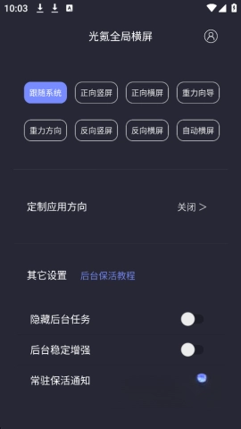 光氪全局横屏是一款实用的横屏应用,拥有强制横屏设置、应用方向管理等丰富功能。无论是游戏玩家、视频爱好者,还是网页浏览用户,在需要横屏使用手机的场景下,它都能带来出色体验,十分值得尝试!