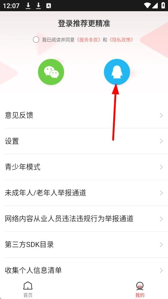 请先勾选【我已阅读并同意《服务条款》和《隐私政策》】,再点击蓝色的QQ图标完成登录操作。